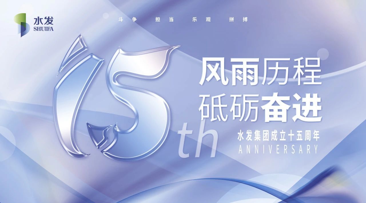 水發(fā)集團(tuán)因水而興,從2009至2024年已走過(guò)15個(gè)春秋,數(shù)字“15”結(jié)合流動(dòng)的水來(lái)設(shè)計(jì),并結(jié)合了“斗爭(zhēng)、擔(dān)當(dāng)、拼搏、樂(lè)觀”的新水發(fā)精神,金色的徽章更顯品質(zhì)。