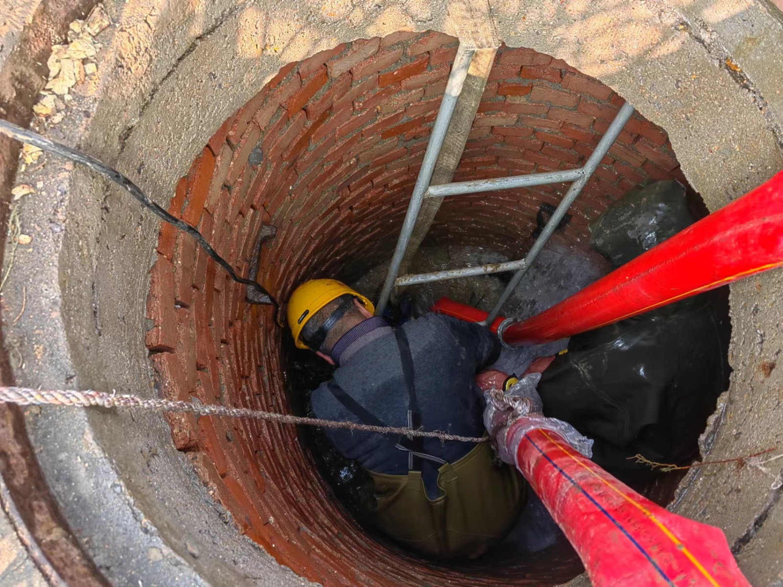 漏水現(xiàn)場位于海豐路與S309省道交叉口附近,漏水管道為DN800PE供水主管道,噴出的水柱高達(dá)10余米,由于主管道水壓高、漏水量大,搶修現(xiàn)場一片泥濘,為盡快修復(fù)受損管道,縮短停水時(shí)間,搶修隊(duì)緊急調(diào)拔兩臺(tái)大功率水泵同時(shí)排水,搶修隊(duì)員不顧天氣寒冷、作業(yè)空間狹小,泡在齊腰深的冰水里,接力作業(yè)、無縫配合,搶時(shí)間、拼進(jìn)度,快速排查漏水原因及損壞點(diǎn)、更換配件補(bǔ)漏,經(jīng)過近4個(gè)小時(shí)的全力搶修,到下午2時(shí)成功修復(fù)了受損管道,全面恢復(fù)供水,解決了群眾用水之急。
